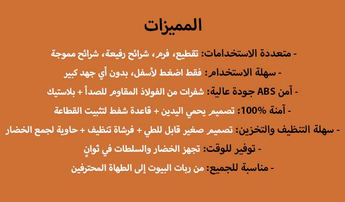 ✔️ تصميم آمن وسهل التنظيف + حاوية لجمع الخضار